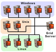 The grid server runs on any platform which supports Inferno (Windows, Linux, Unix and more). The server does not need to be running on the same platform as the grid clients.